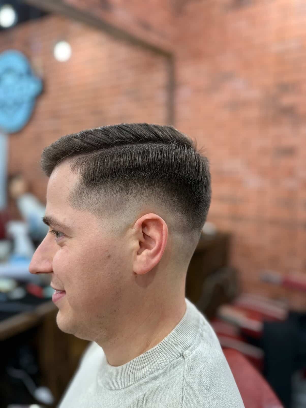 Klasyczne strzyżenie, precyzyjne i z charakterem.